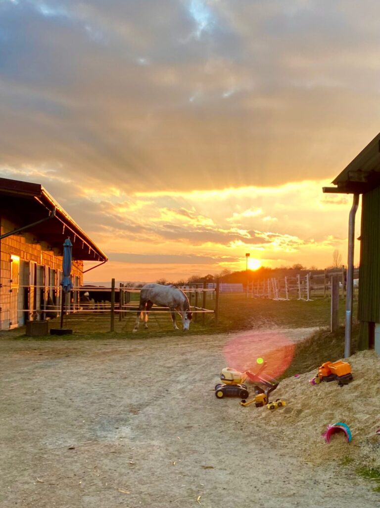 Im vergangen Jahr konnten wir einen weiteren Offenstall fertigstellen. Er bietet platz für 5-6 Pferde und bietet neben einer großzügig befestigten Fläche einen Sandplatz sowie mehrere Heuraufen. Zusätzlich bietet er direkten Anschluss an die Sommerwiesen. Die Selbsttränken im Offenstall sind frostsicher und können somit auch im Winter genutzt werden. Bei Interesse schreiben sie uns gern…